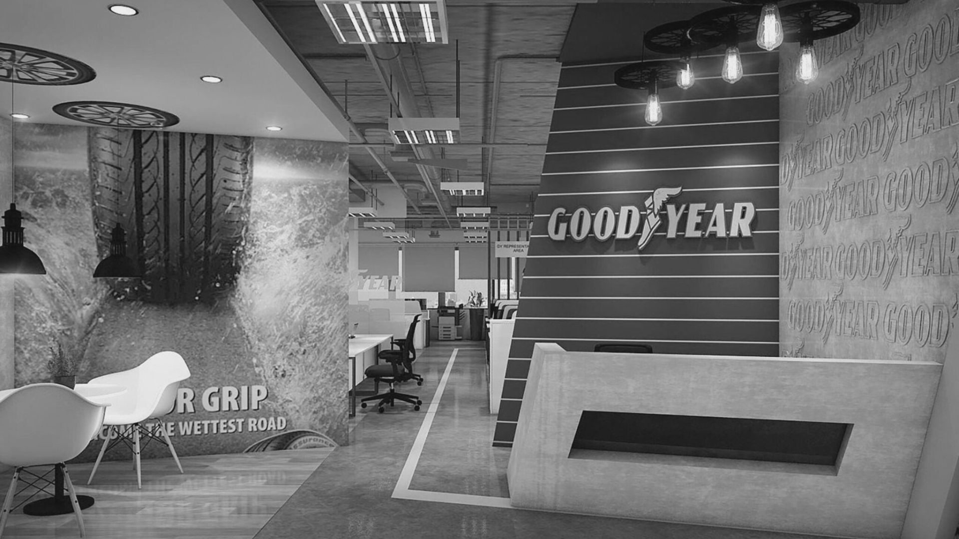 A: The design acts as a powerful branding tool. By incorporating elements like racetracks and the “Wingfoot” logo, it visually communicates Goodyear’s core values of speed and innovation. For a manufacturing leader, this transforms the office from a simple workspace into an immersive brand experience, reinforcing their market position and impressing both employees and clients.