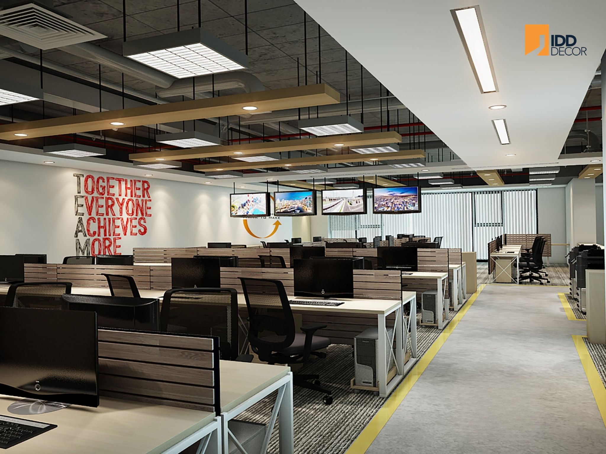 Với đặc thù công việc đòi hỏi tính tổ chức cao, phối hợp chặt chẽ và tốc độ triển khai đồng bộ, mẫu thiết kế nội thất khu vực làm việc của ECOBA do IDD Decor thiết kế đã thể hiện rõ ràng tư duy kiến trúc lấy công năng làm trọng tâm, đồng thời truyền tải văn hóa doanh nghiệp qua từng chi tiết.