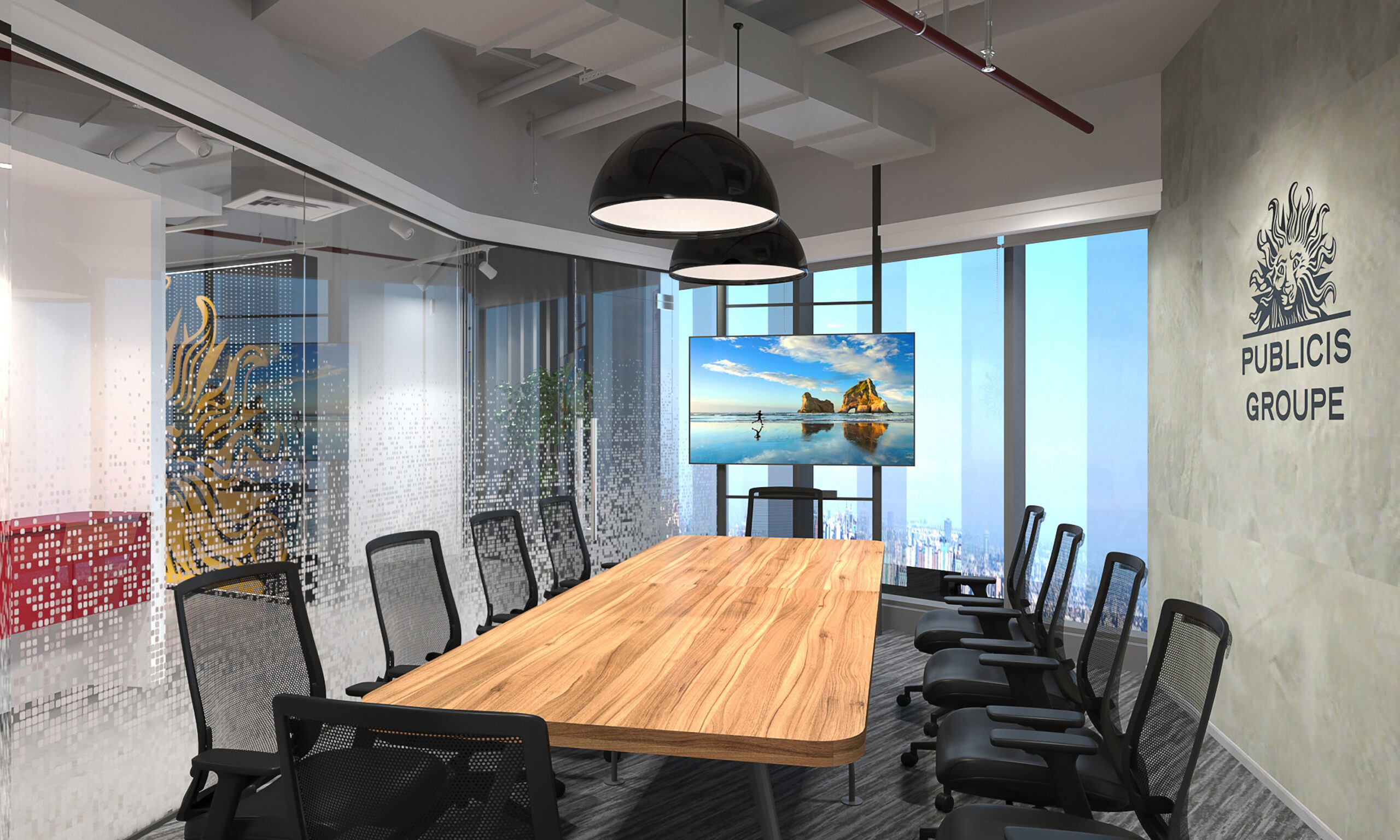 Nếu như khu vực lễ tân của Publicis thể hiện sự uy quyền, niềm kiêu hãnh của một tập đoàn truyền thông đa quốc gia, thì tại mẫu thiết kế nội thất khu vực phòng họp này của Publicis sự cộng hưởng giữa sáng tạo và chuyên nghiệp đã làm nên nét đẹp của và sự tôn nghiêm của khu vực này.